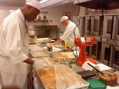 Here are some pictures that I've taken at school. Most are with my phone. Even though I have a camera in my bag at all times I seem to use the phone most! I feel silly getting the camera out in class. The pictures from the ribbon-cutting are with the camera. Notice that I'm not in any of them! Actually, one is a picture of a picture of me that is on the wall of the hall outside of our kitchen. We are supposed to be taking pictures during class (there is a camera in each kitchen) for collages on the walls of the halls but our class hasn't taken any since the first week. I stayed after school Tuesday to help get ready for the event that night. I was in the pastry kitchen most of the day. That was cool! I love to bake and am fascinated with making all of the little fancy pastries. I definitely want to do the patisserie/baking program when it's available. I'll get six weeks of it this fall but I want more than that!